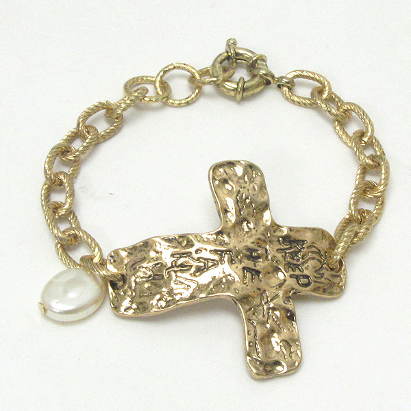 Gold Tone Cross Bracelet