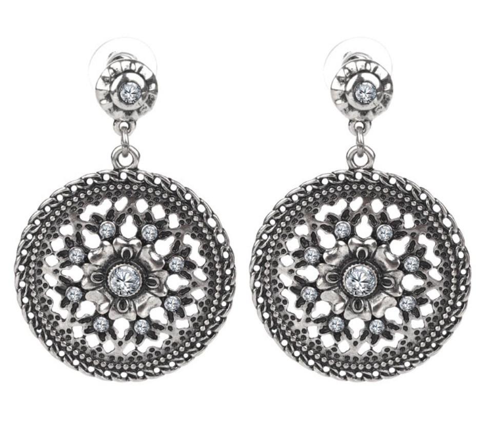 Enjoy these beautiful circle dangle earrings with rhinestone accent. Don't miss out.