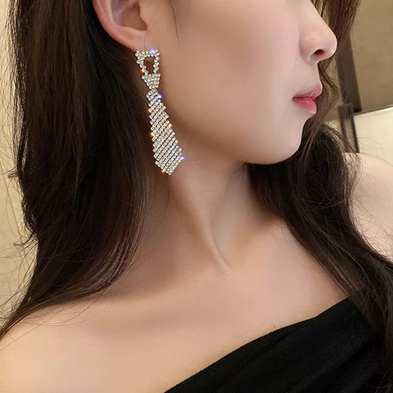 Beautiful bling earrings shaped like a tie.