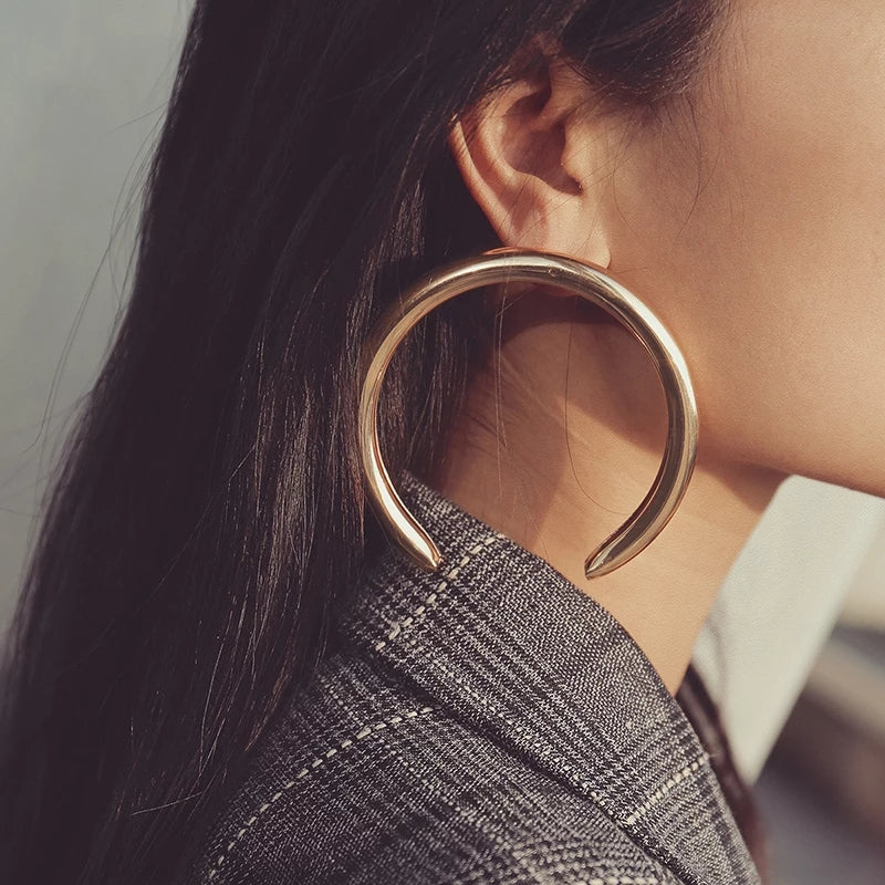 Gold Tone Large Open Circle Earrings