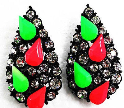 Vintage inspired earrings with rhinestone accents in between the bright colors.