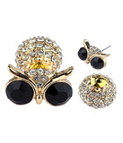If you love owls then enjoy these gold tone rhinestone earrings in popular double sided design.