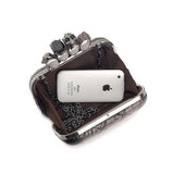 This is the perfect unique edgy clutch to go out on the town. Slide your fingers right on top of your bag for easy holding and a great looking accessory.