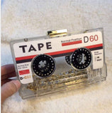 No one will have this clutch when you go out! Amazing 90's throw back cassett tape clutch with optional arm strap.