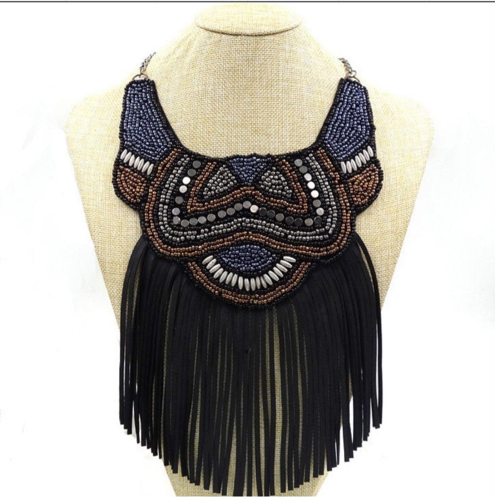 Enjoy this amazing Ethnic inspired necklace with tassel details.