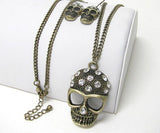 Add some edge to your outfit with this skull necklace with rhinestone detail. Great matching earrings.