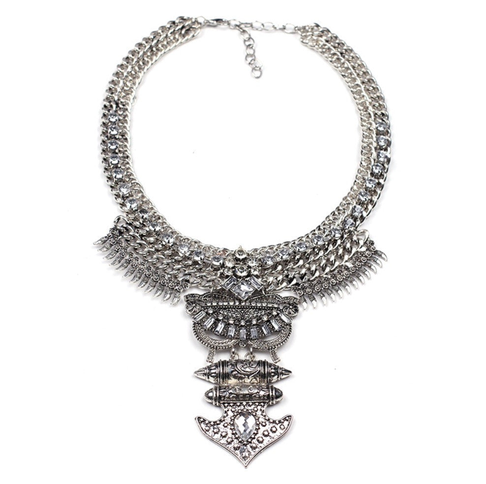 Silver Tone Tribal Statement Necklace
