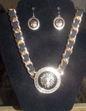 Beautiful black and gold lion pendant necklace with matching earrings.