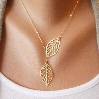 Gold Tone Double Leaf Necklace