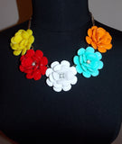 Beautiful vibrant colored flower necklace to match with many colors schemed outfits.