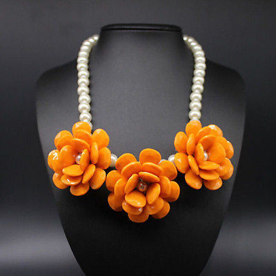 Orange Flower Pearl Necklace