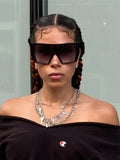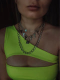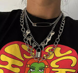 These are three individual necklaces. One a pin, another a lock and keys and the last a chain.