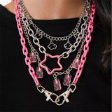 Unique punk multi layer chain necklace that has clouds, a star, and gummy bears. Light weight and alot of fun.